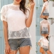 Sexy Short Sleeve Round Neck See-through Lace Top + Sling Top Two-piece Set