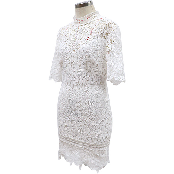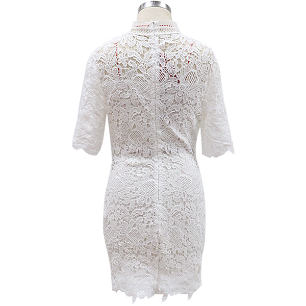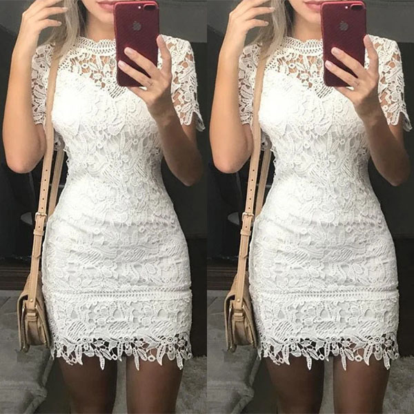 Sexy Short Sleeve Round Neck Slim Fit Hollow Out Lace Dress