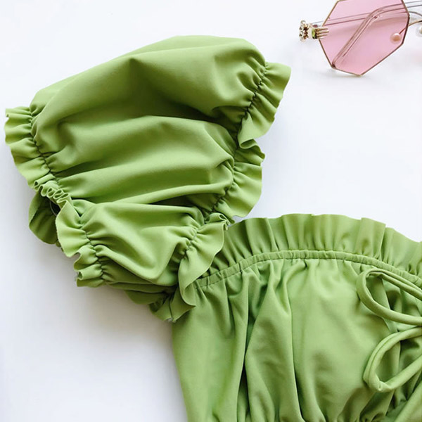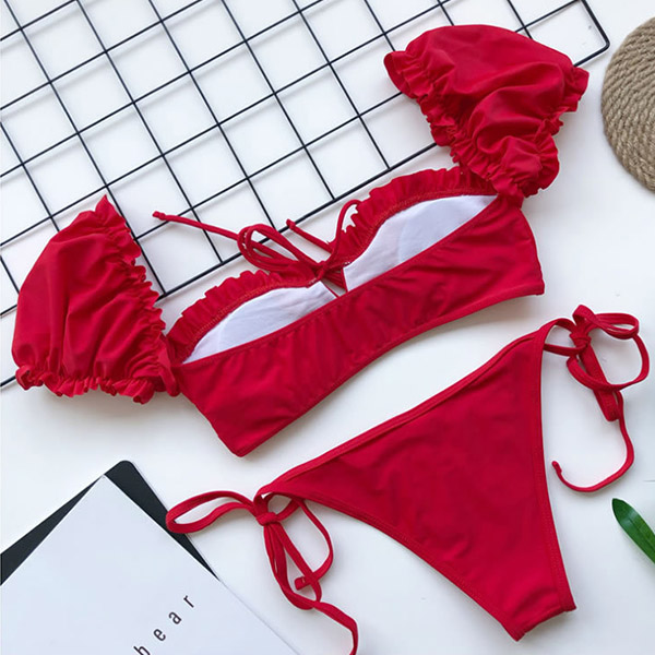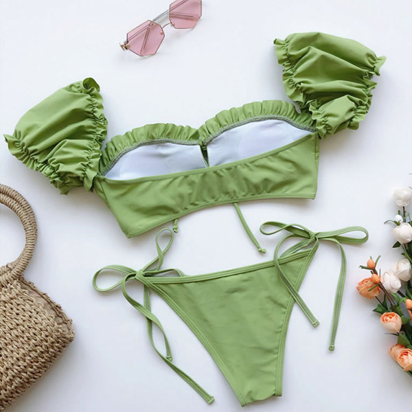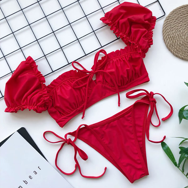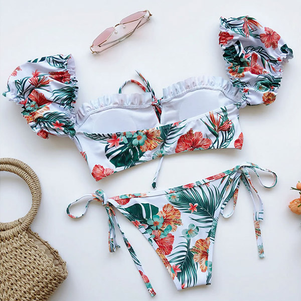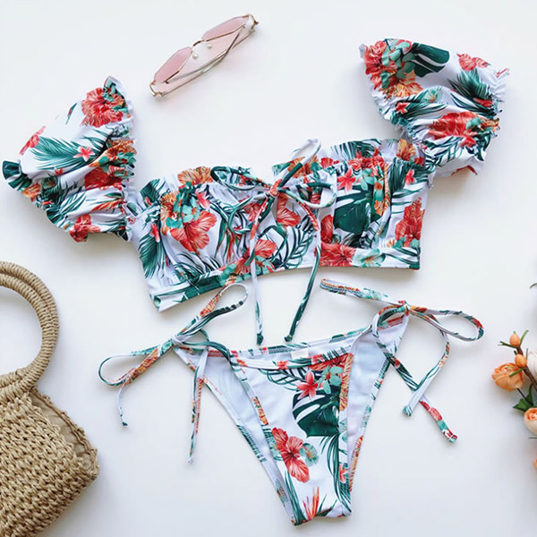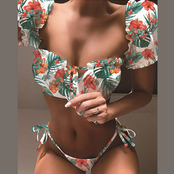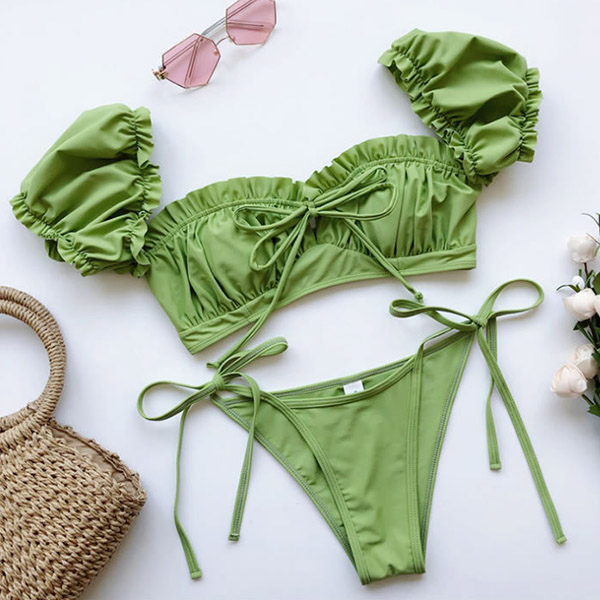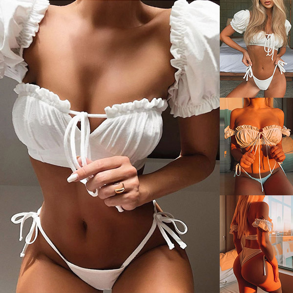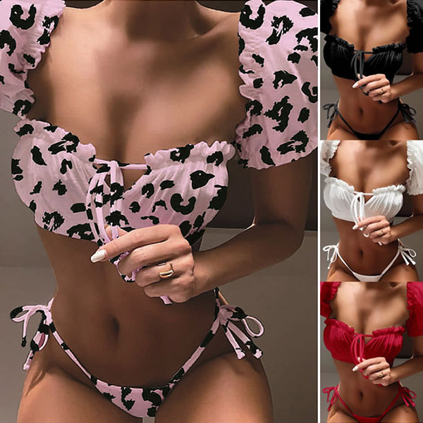 For your beach days,you need such a cozy yet sexy bikini set. It consists of a short sleeve square collar bikini top and a low-waist bikini bottom,this bikini set is a good weapon to showcase your perfect body-line. You can just lie on the beach with this bikini set to relax yourself!