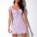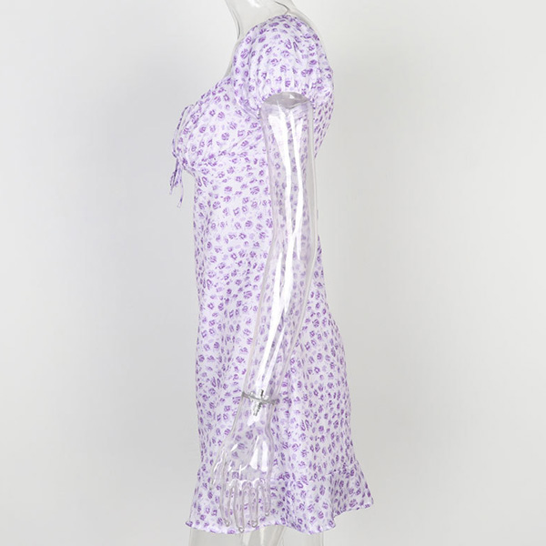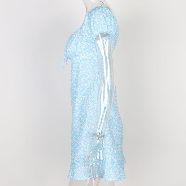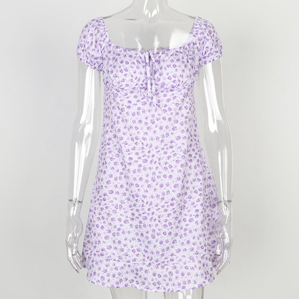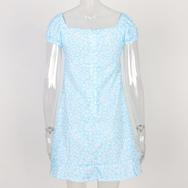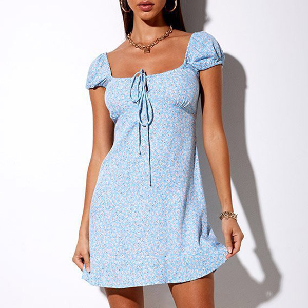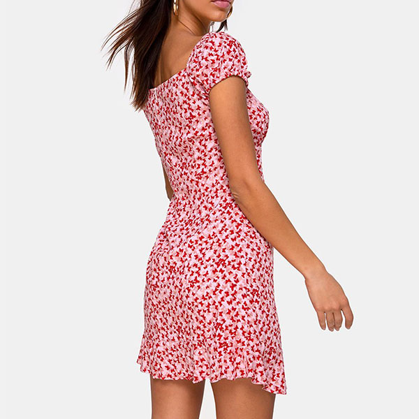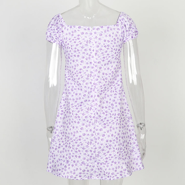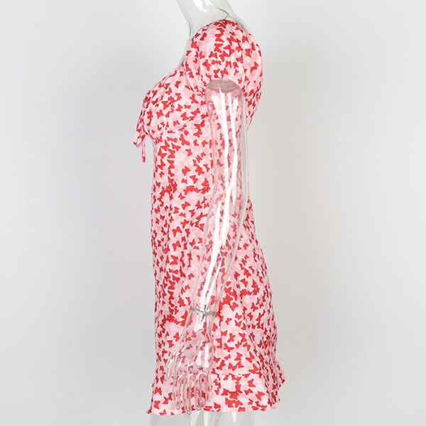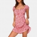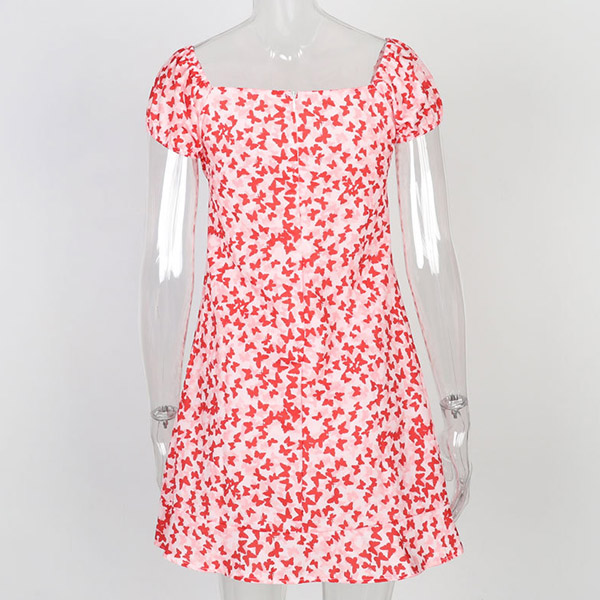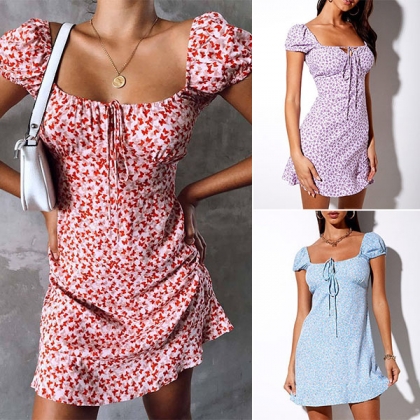 Sexy Short Sleeve Square Collar Slim Fit Printed Dress
