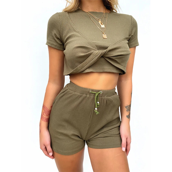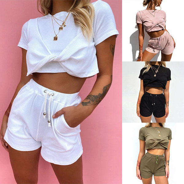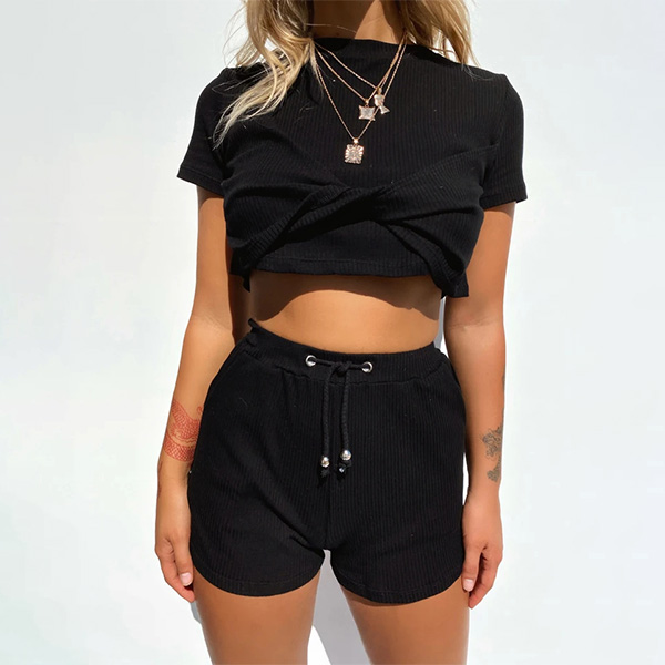 Sexy Short Sleeve Twisted T-shirt + Shorts two-piece Set