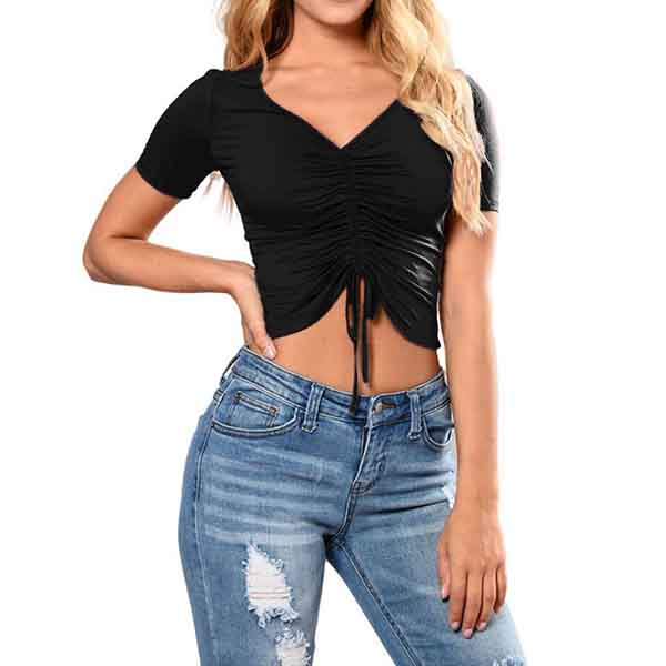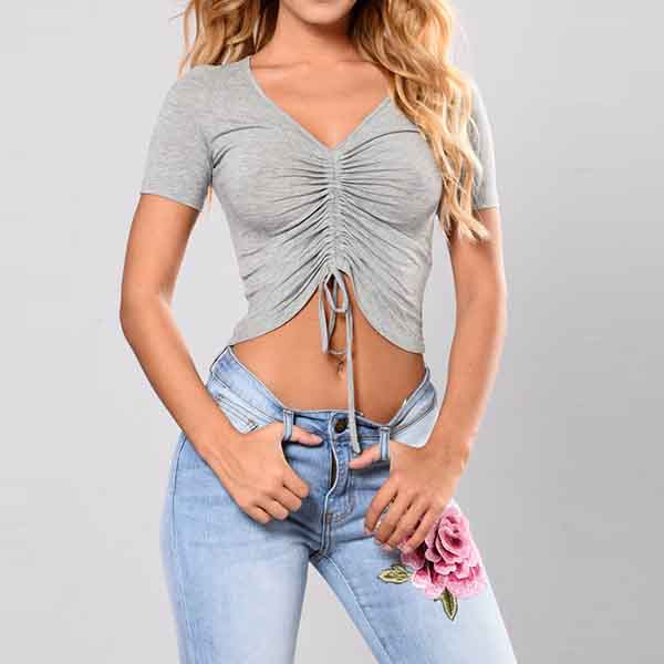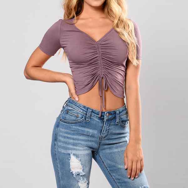 designed with short sleeve,v-neck and soft fabric,this piece can keep you cozy yet sexy. The unique design at front