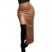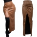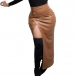 Sexy Side Button Front Slit High-rise Artificial Leather PU Maxi Skirt