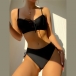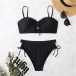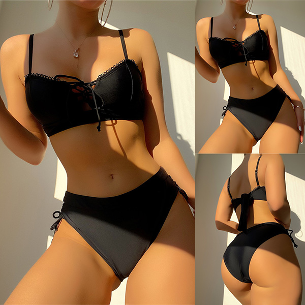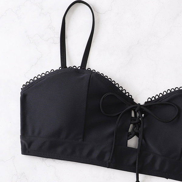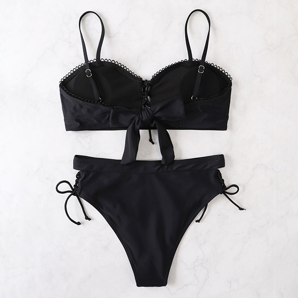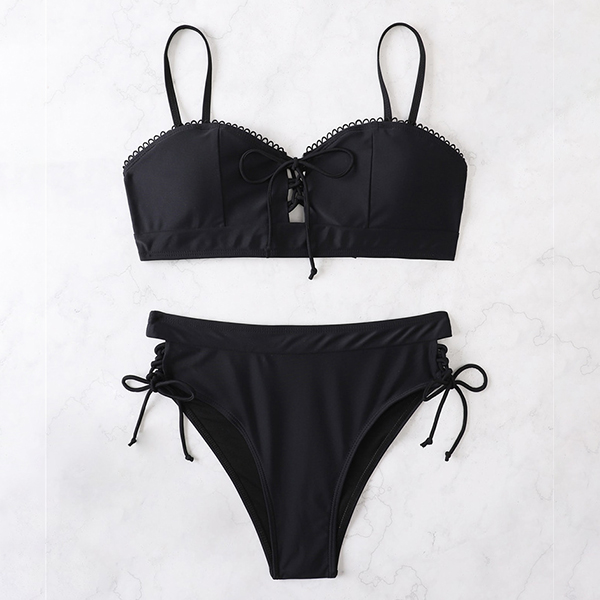 Sexy Side Drawstring Black Two-piece Bikini Set