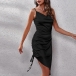 Sexy Side Drawstring Ruched Irregular Hemline Slip Dress