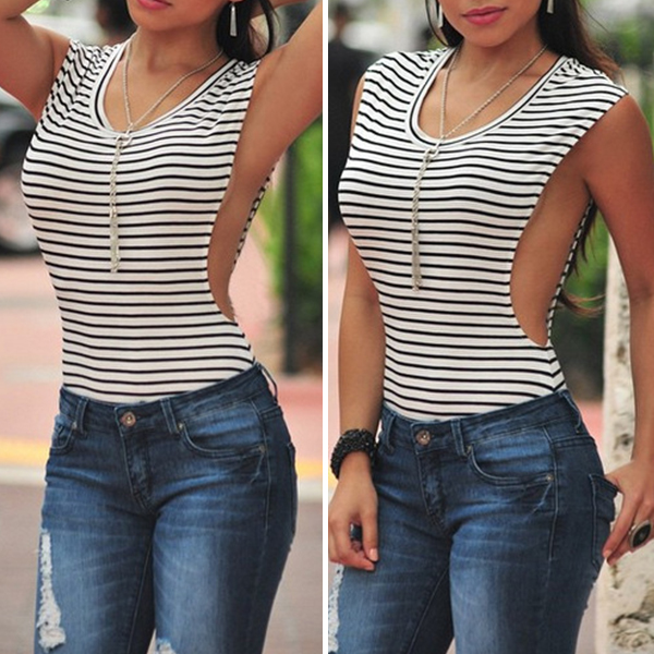 Cozy yet sexy,this is what this t-shirt can bring for you! Striped style,crafted from soft and breathable fabric,with sleeveless