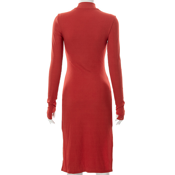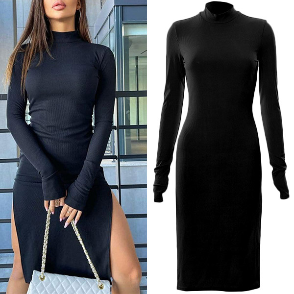 Thanks to the fit silhouette design,your slender figure can have a full display in this dress. Solid color style,the side slit hem design can lend you some sexy and flirty vibes. Finished with long sleeve and mock neck design,this dress also can offer you a comfortable day with itss soft and breathable fabric.