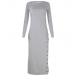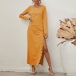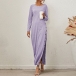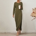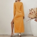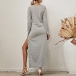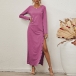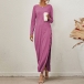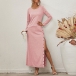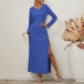 Sexy Side Slit Hem Long Sleeve Round Neck Solid Color Dress