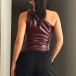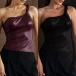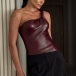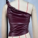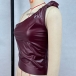 Sexy Slant Shoulder Irregular Hemline Artificial Leather PU Sleeveless Shirt