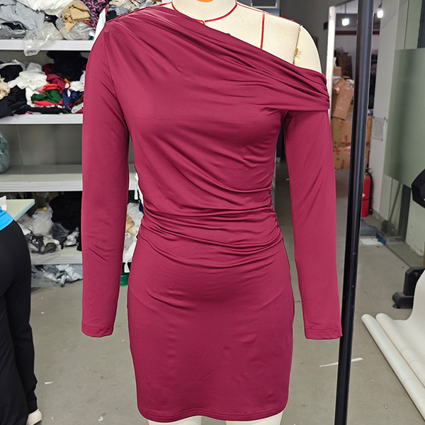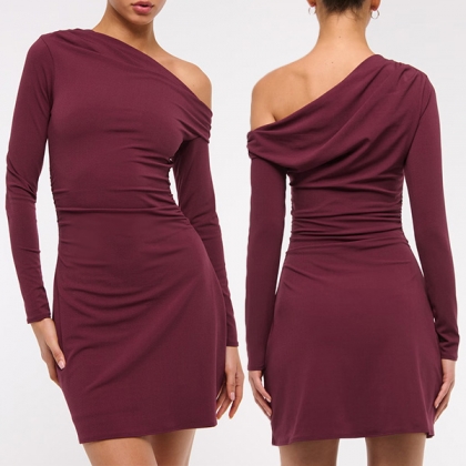 Sexy Slant Shoulder Long Sleeve Bodycon Dress