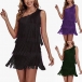 Sexy Slant Shoulder Sleeveless Tassel Party Dress