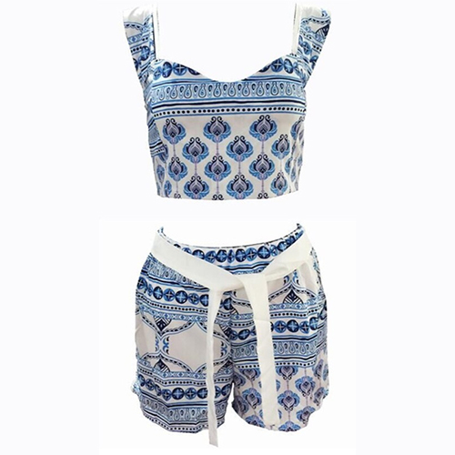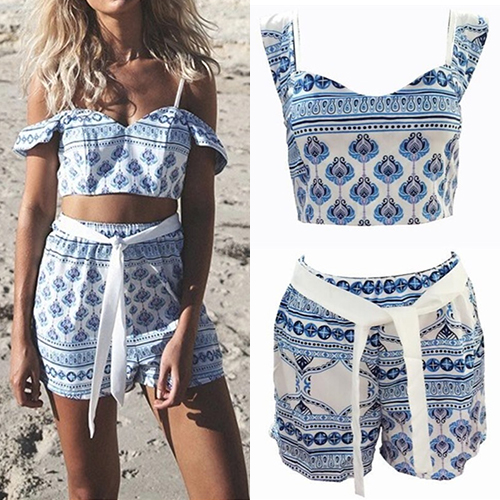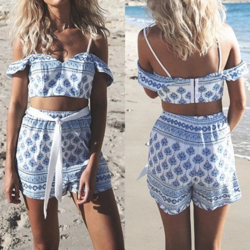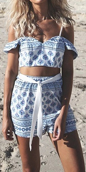 Including a slash neck crop tops and a high waist shorts,and its vibrant floral print makes it look more eye-catching.