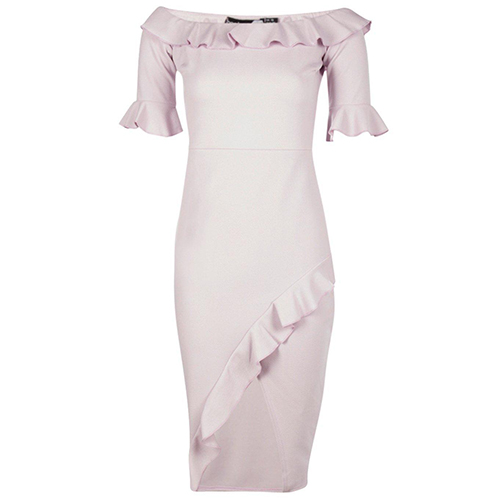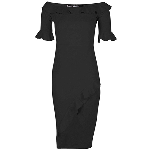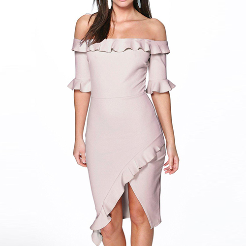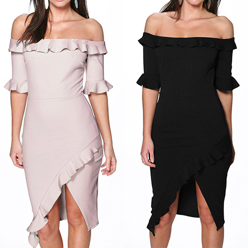 slash neck,irregular hem and flouncing design make this dress look so sexy and sultry. Paired with