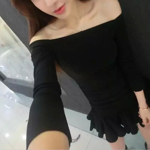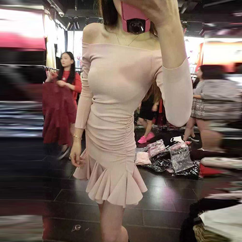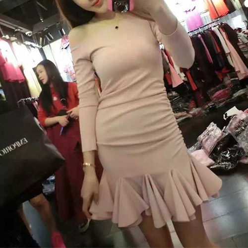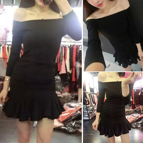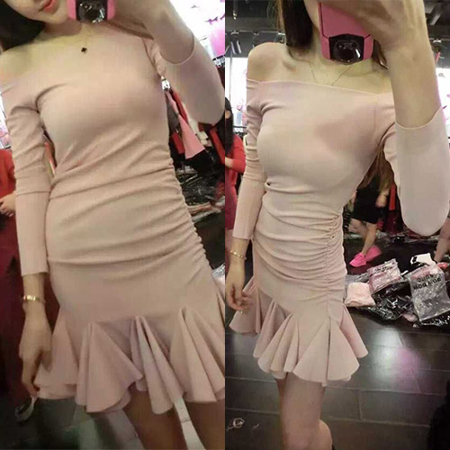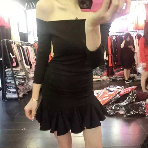 generous solid color,and its slash neck and fishtail hem design makes it look so sexy and
