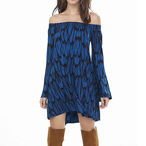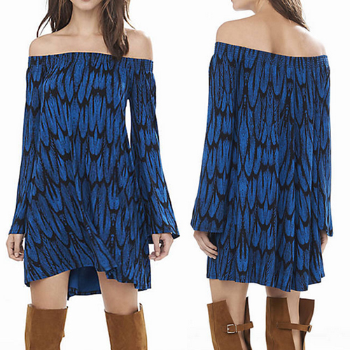 Looking sexy and keeping comfy will be an easy feat for you in this printed dress. Its slash neck