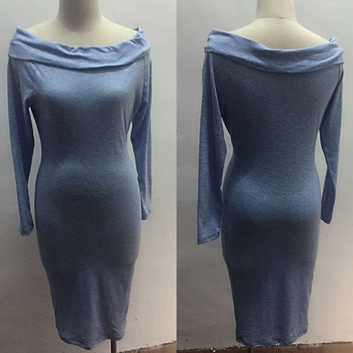 a mid length and a fit silhouette. And its slash neck design gives you the chance to show off your