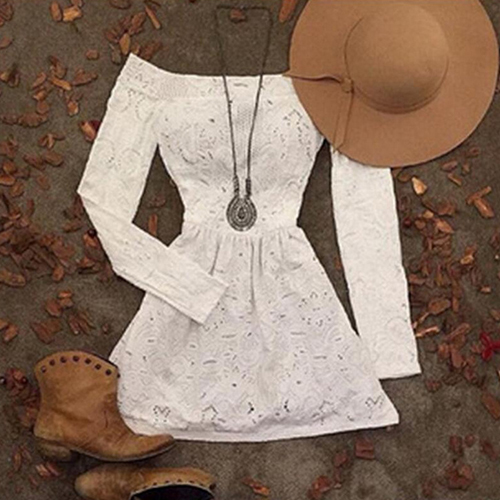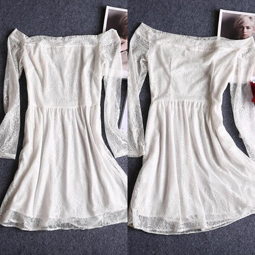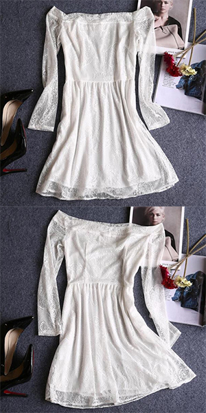 Boasting a pure white color,its slash neck design adds some sexy and charming flavor.