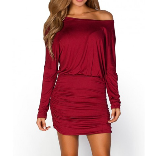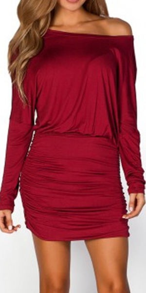 This long sleeve dress is perfect for any last-minute invitation. Solid color style,its slash neck design makes