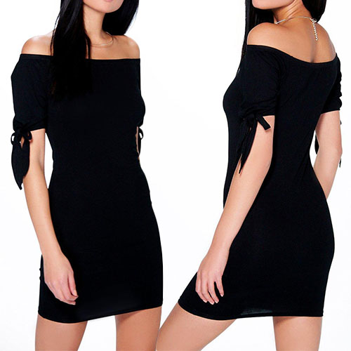 its slash neck and super fit silhouette can perfect set off your sexy and sultry style. This effortless dress is