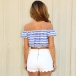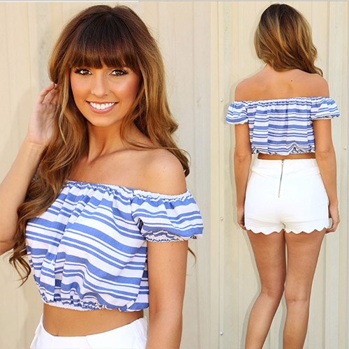 Then how could you miss this crop tops? It features striped style,with sexy slash neck