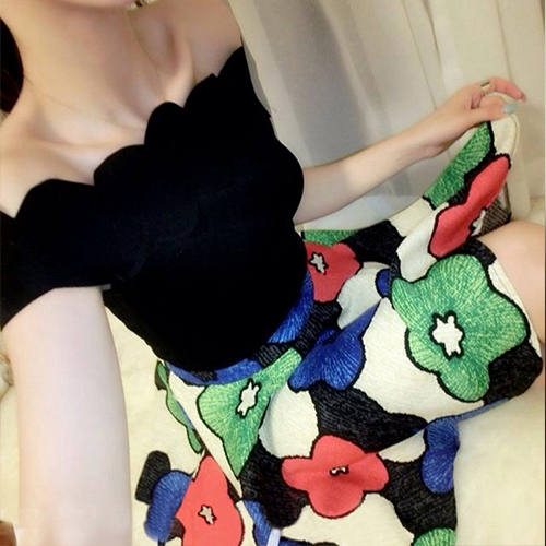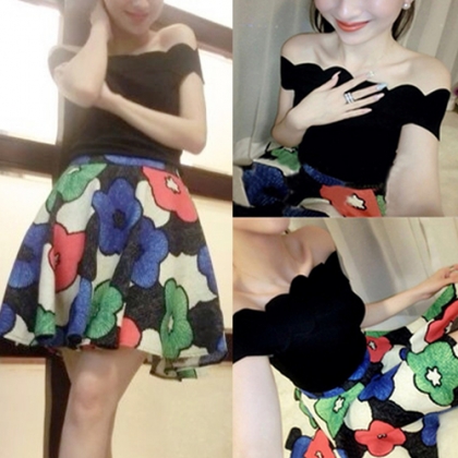 Tops with solid color style,sexy slash neck and short sleeve design. Skirt with
