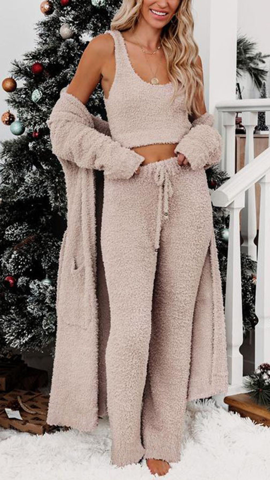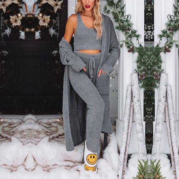 For these autumn days,this three-piece set can be your good choice. Solid color style,including a sleeveless round neck crop top,a high waist pants and a long sleeve cardigan,this three-piece set not only can keep you warm,but also can update your style and boost your entire charm.
