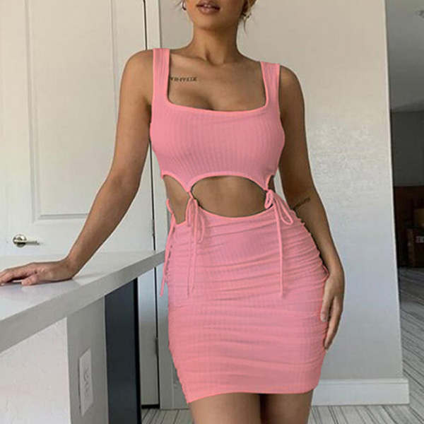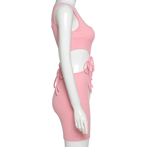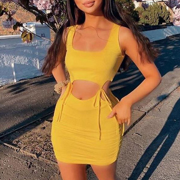 You are sure to be the focus when you dress yourself up with this two-piece set. Solid color style,including a sleeveless U-neck crop top and a high waist skirt,this two-piece can flaunt off your seductive curve. So why not exude your sexy and alluring vibes through this two-piece set?