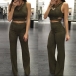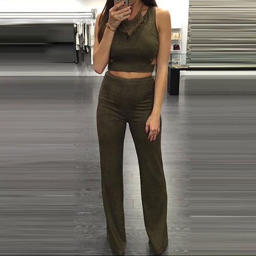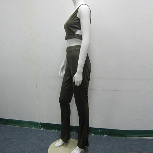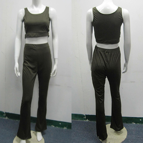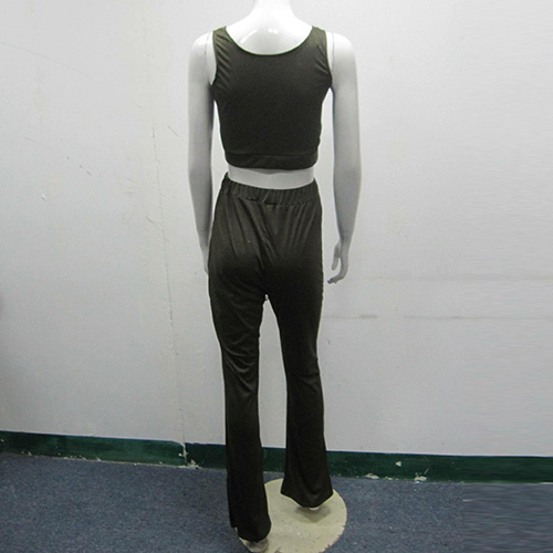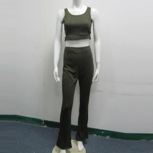 Solid color style,including a sleeveless round neck crop tops and a high waist pants,