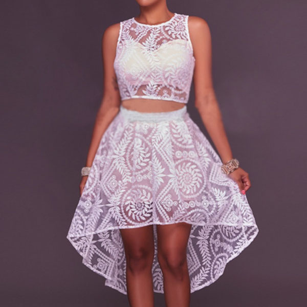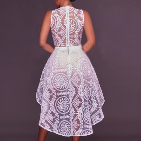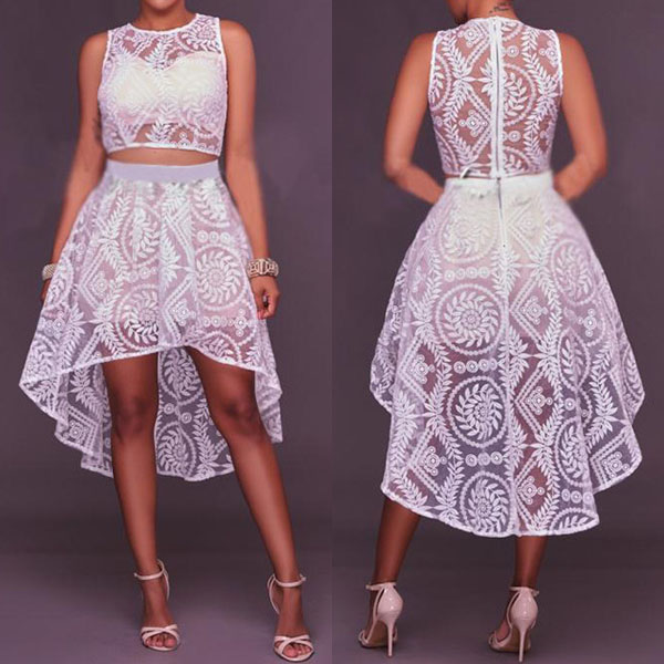 with sleeveless,round neck,hollow out high waist and a high-low hem,sexy and seductive. Paired with your sexy heels