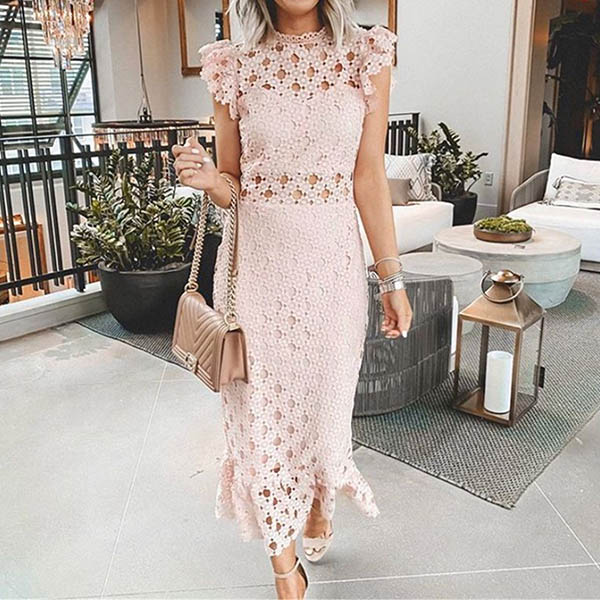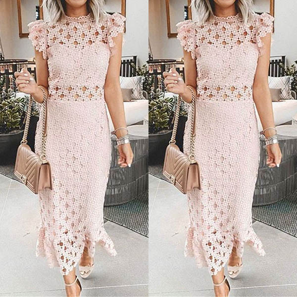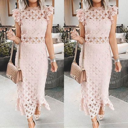 Outfitted with the features of sexy and charming,this dress is the key to an effortlessly chic and sultry look. The sweet pink tone and hollow out details make this piece look sweet yet flirty. When invited to a night party or weekend gathering,you can trust in this dress to arouse more eyes.