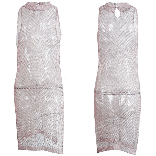 Sexy Sleeveless Mock Neck Slit Hem Hollow Out Bikini Smock