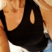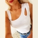 Sexy Sleeveless Oblique V-neck Hollow Out Slim Fit Tank Top
