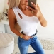 Only need one glance,you would be attracted by this chic and sexy tank top. It comes with a solid color,the oblique v-neck,hollow out design and fit silhouette can make you look sexy and flirty. All-match design allows to be matched with different style bottoms.