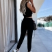 Sexy Sleeveless Round Neck Crop Top + High Waist Pants Two-piece Set