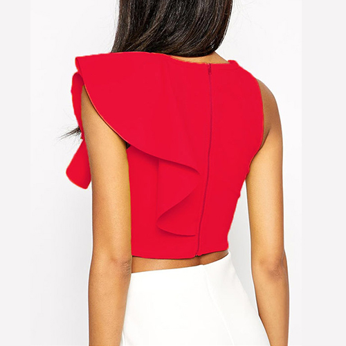 It features solid color style,with sleeveless,round neck and flouncing design,refined and charming.
