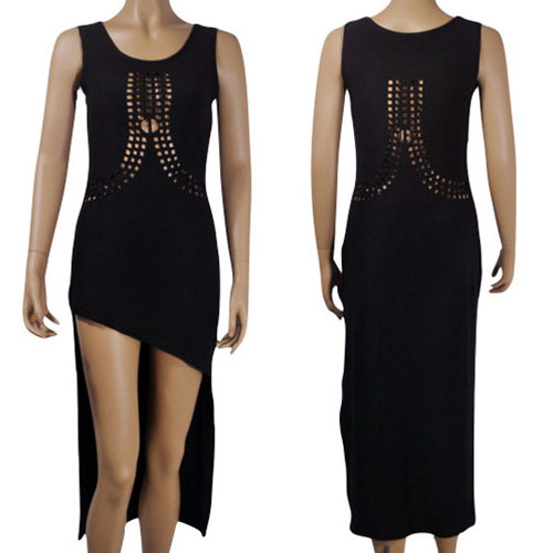 to draw more attention. Designed with sleeveless,round neck,an irregular hem and hollow out design,which