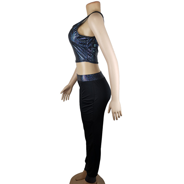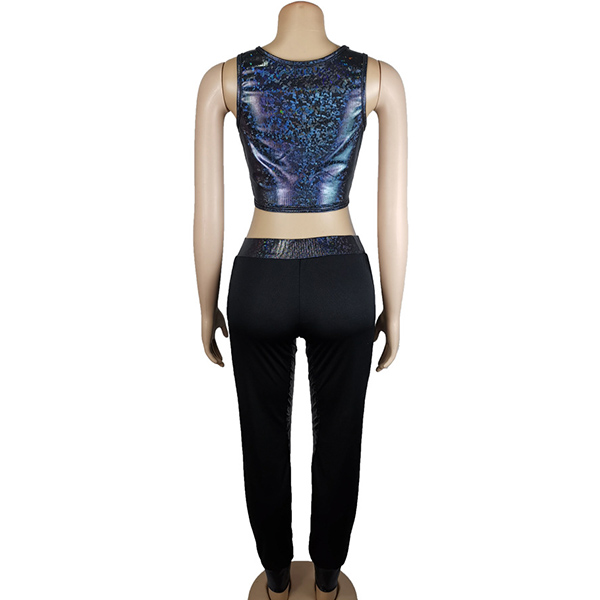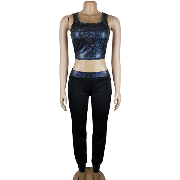 Sexy Sleeveless Sequin Crop Top + Pants Two-piece Set