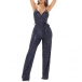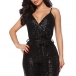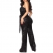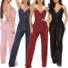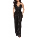 Sexy Sleeveless V-neck Bling Bling Sequin Tie-belt Slip Flared Jumpsuit