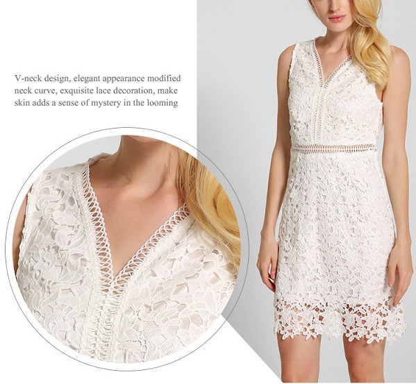 sleeveless,v-neckline,a fit silhouette and hollow out details,sexy and sultry. All you need to do is pair it with