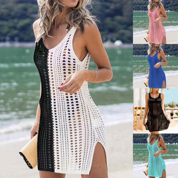 For a sexy and charming beach look,this smock dress can be a perfect weapon. Solid color style,the v-neck,slit hen and hollow out details make this piece look so flirty and sultry. You can just match it with your sexy bikini sets to enjoy your sun-soaked beach days.
