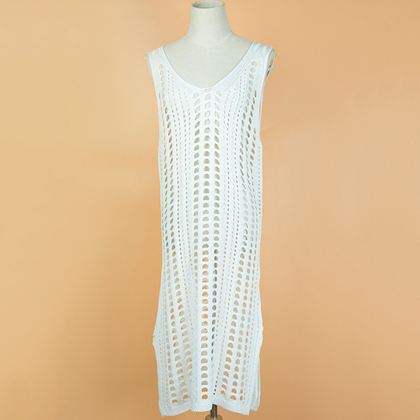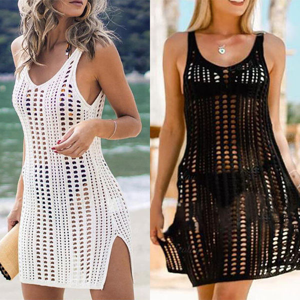 For a sexier beach look,this bikini smock would be a good helper. It is designed with sleeveless,v-neck,slit hem and hollow out details,flirty yet feminine. When matching with your bikini set,you can easily be a pleasant sight to draw more attention.