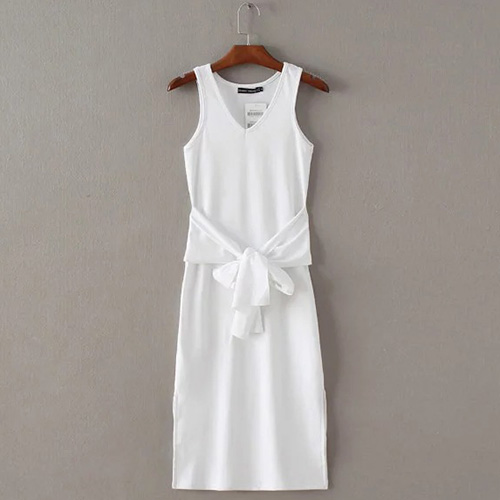 Update your sweet street-styling with this dress. Solid color style,with sleeveless,v-neckline and a slit hem,simple yet sexy.