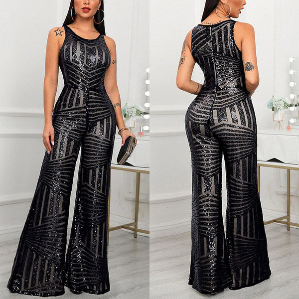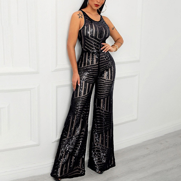 Sexy Sleeveless Wide-leg Sequined Jumpsuit