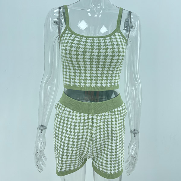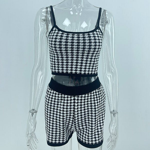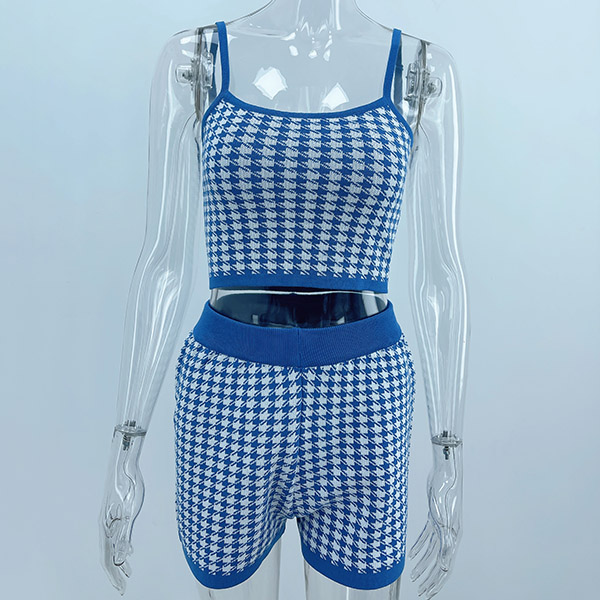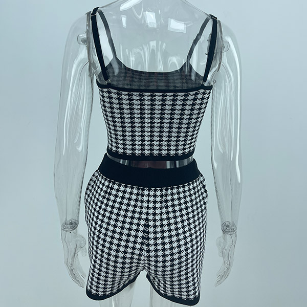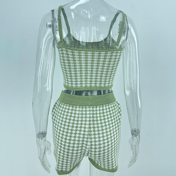 Sexy Sling Plaid Crop Top + High Waist Shorts Two-piece Set