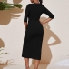 Sexy Slit Drawstring Hem Half Sleeve Round Neck Solid Color Tight Dress
