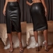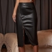 Sexy Slit Hem Front-zipper High Waist Slim Fit PU Leather Skirt