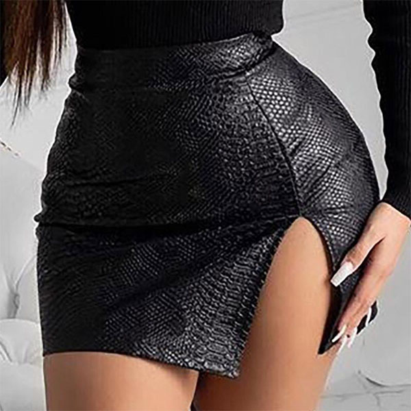 Hey,girls,it is a good chance to flaunt off your charming and slender legs through this PU leather skirts. It is finished with high waist and slit hem design,which can lend you a dash of sexy and flirty vibes. When matching with a tight t-shirt or bodysuit,you can look charming enough!