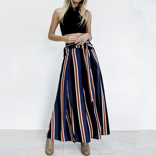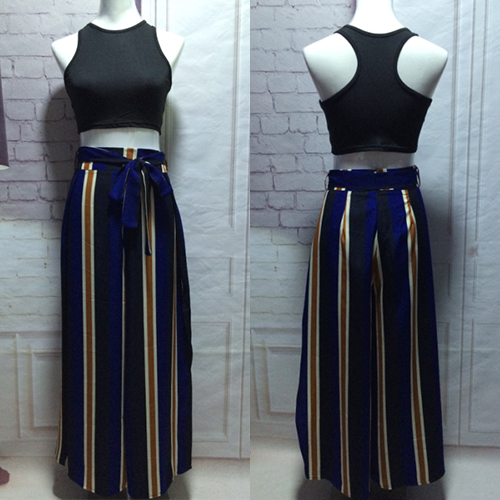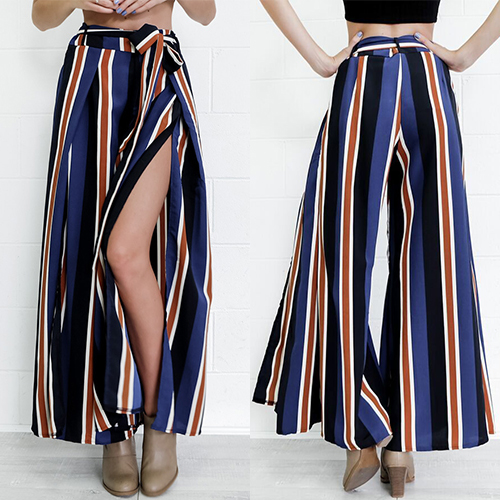 Wanna a different style pants? Then make your eyes focused on this piece. Striped style,with slit hem design