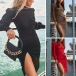 Sexy Slit Hem Long Sleeve Mock Neck Solid Color Slim Fit Dress