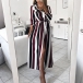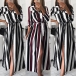 Sexy Slit Hem Long Sleeve POLO Collar Striped Shirt Dress